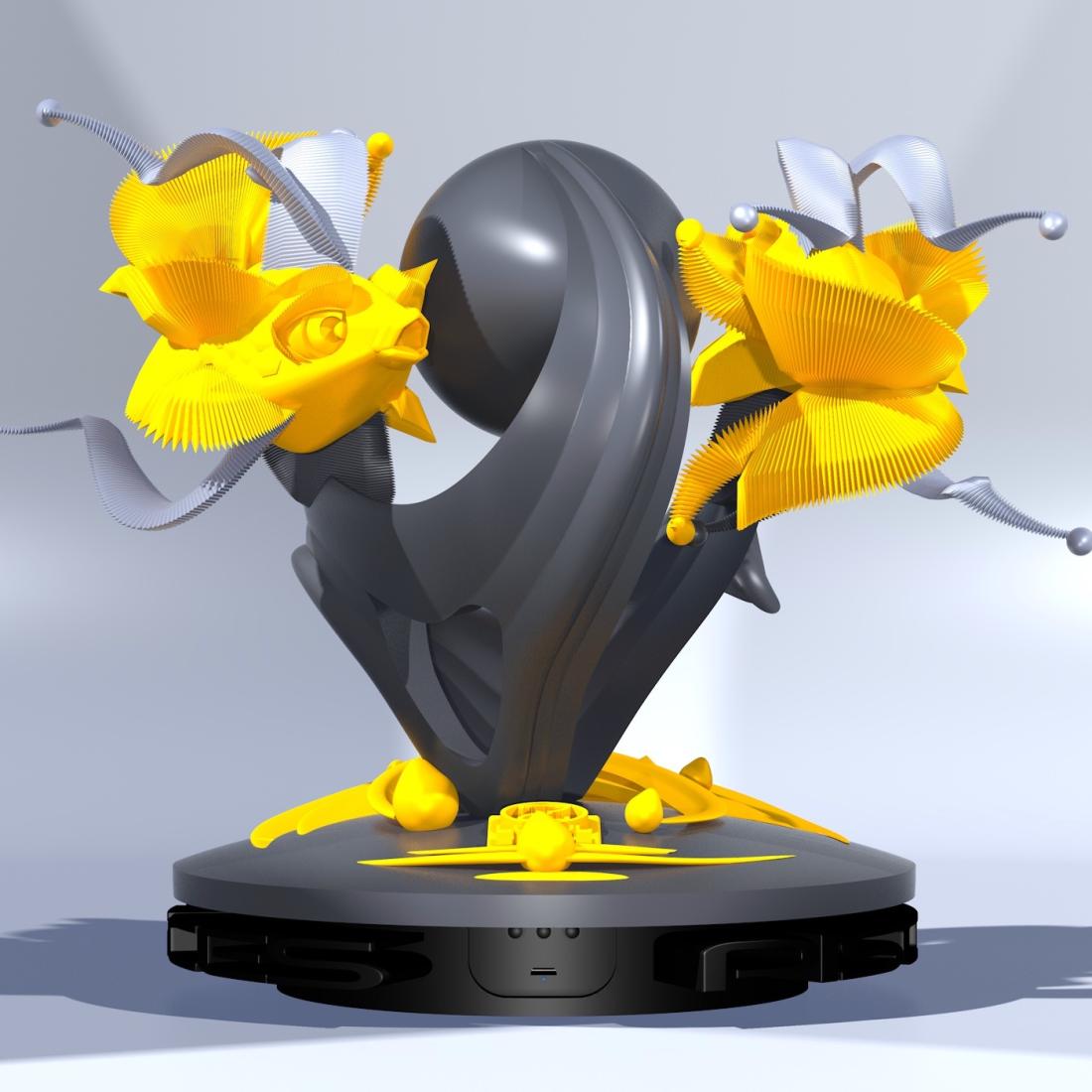PISCES H est une sculpture avec horloge qui est alimentée par une pile AA. La sculpture possède également un plateau tournant fournie avec un accu AA rechargeable grâce à son câble USB. PISCES HORLOGE est réalisé en impression 3D.