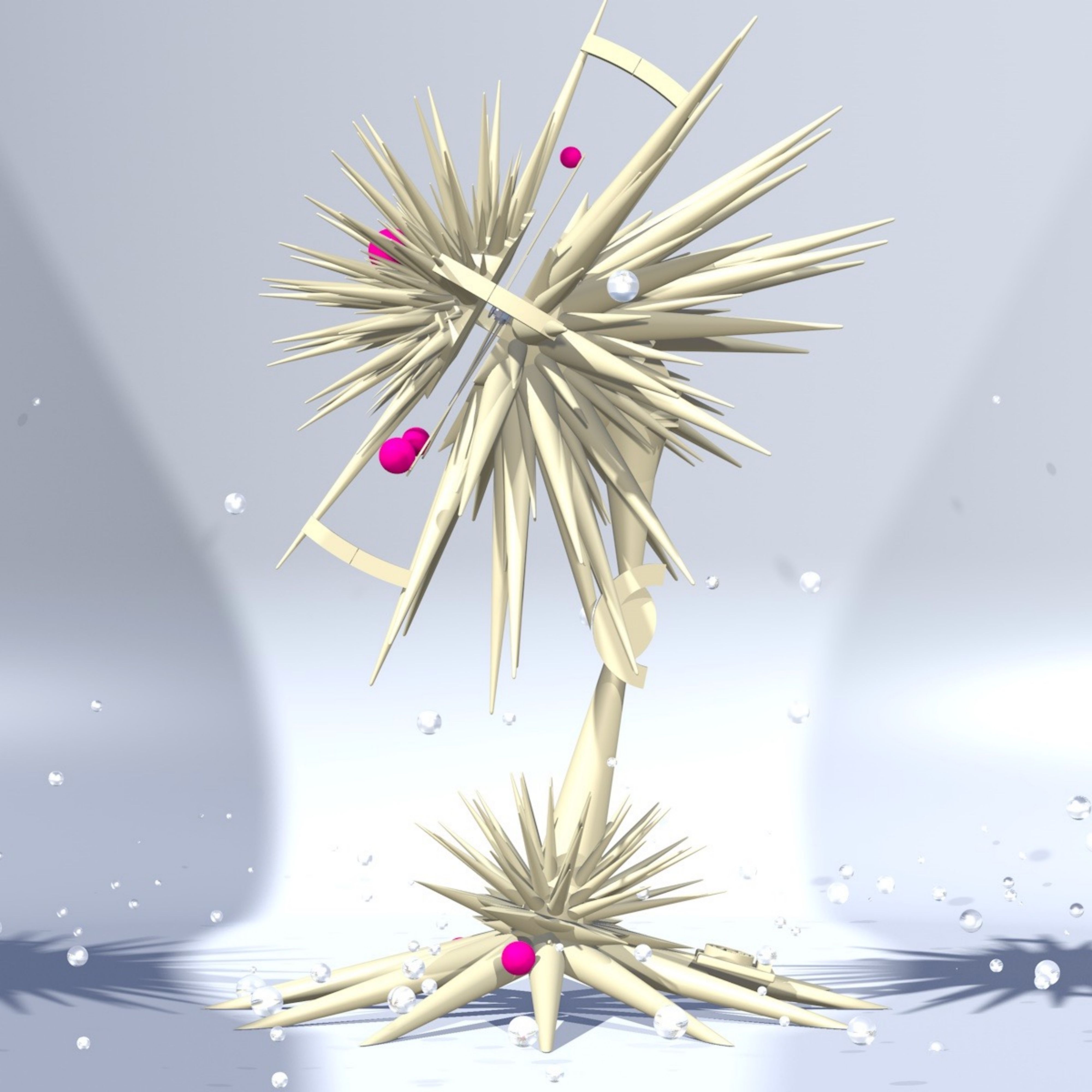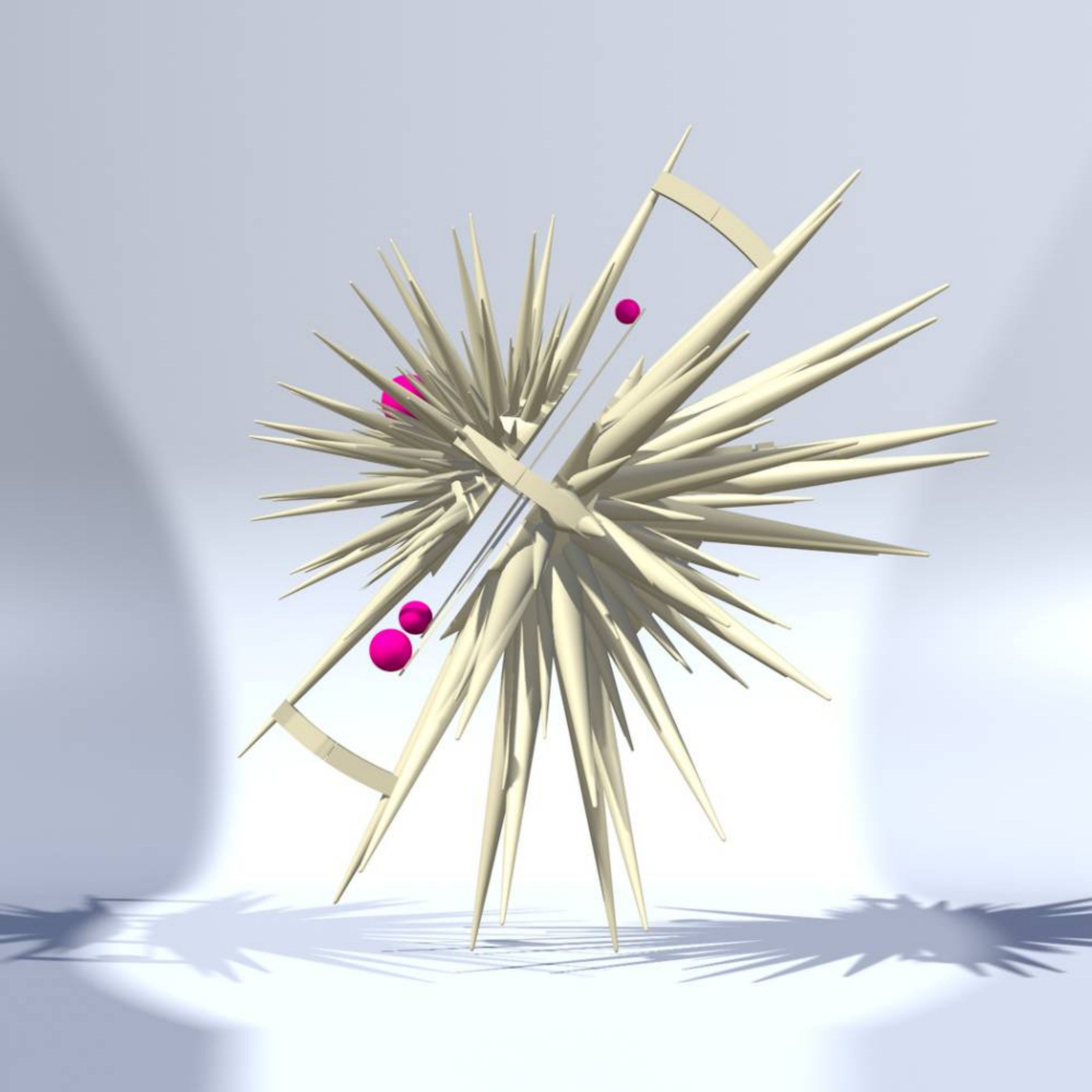 HAZEL VI est une sculpture avec horloge qui est alimentée par une pile AA. L'horloge détachable de son pied peut-être exposée seule. Cette création est réalisée en impression 3D à l'aide de filaments PLA et PVA. HAZEL V doit donc être conservé dans une pièce où la température n'excède pas 30° et ne descend pas en dessous de 0°.