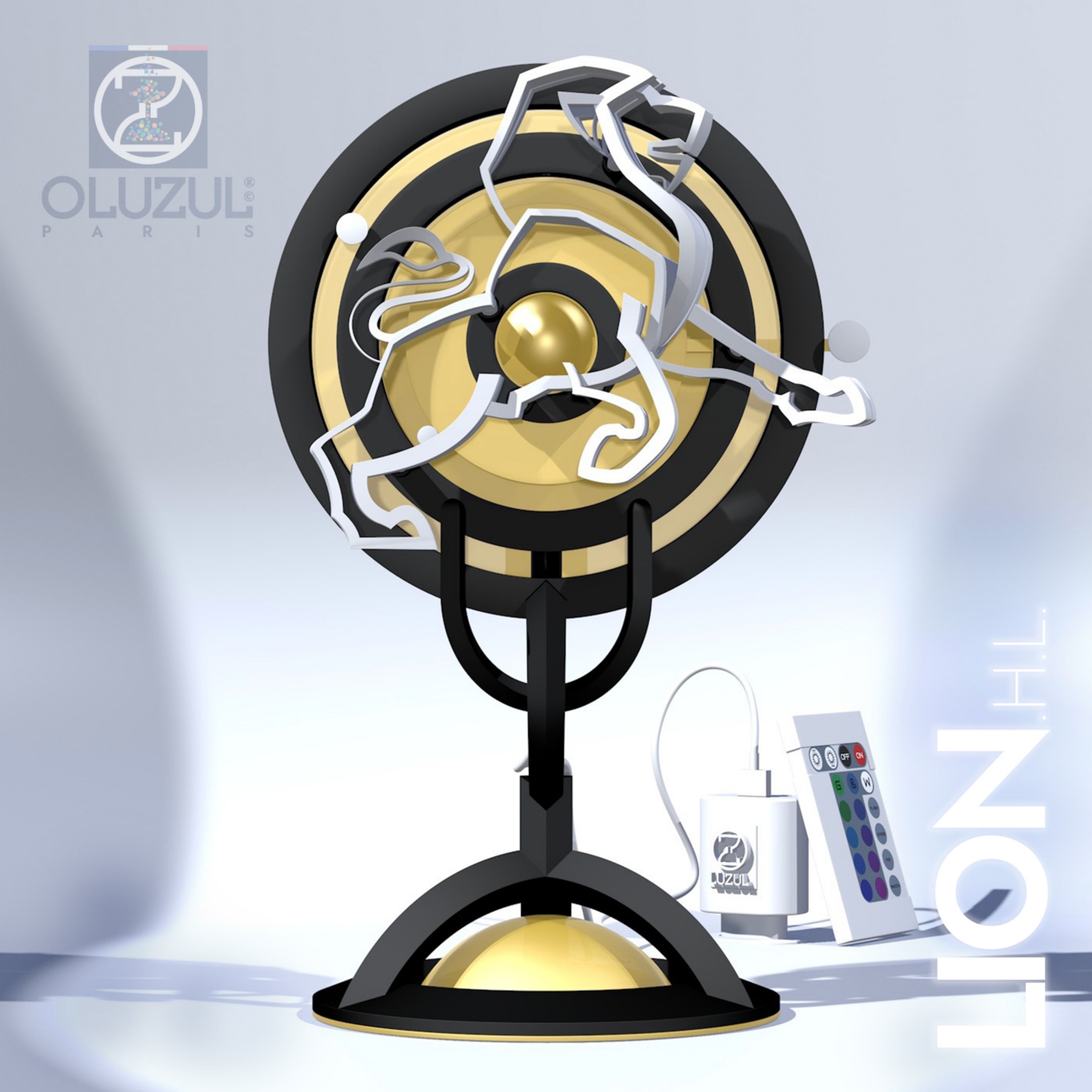 LION.H.L. est une sculpture avec horloge qui est alimentée par une pile AA. C'est aussi une lampe LED qui fonctionne à l'aide d'un chargeur ( non fourni ) muni d'une prise USB 2 / USB 3. Vous trouverez joint : une télécomande avec sa pile "Lithium battery CR2025 3V" qui vous permettra de choisir votre ambiance colorée. Cette création est réalisée en impression 3D à l'aide de filaments PLA et PVA. LION.H.L. doit donc être conservé dans une pièce où la température n'excède pas 30° et ne descend pas en dessous de 0°.