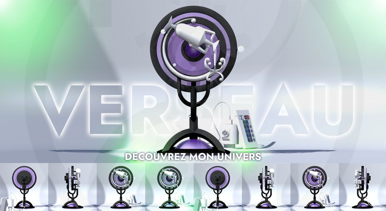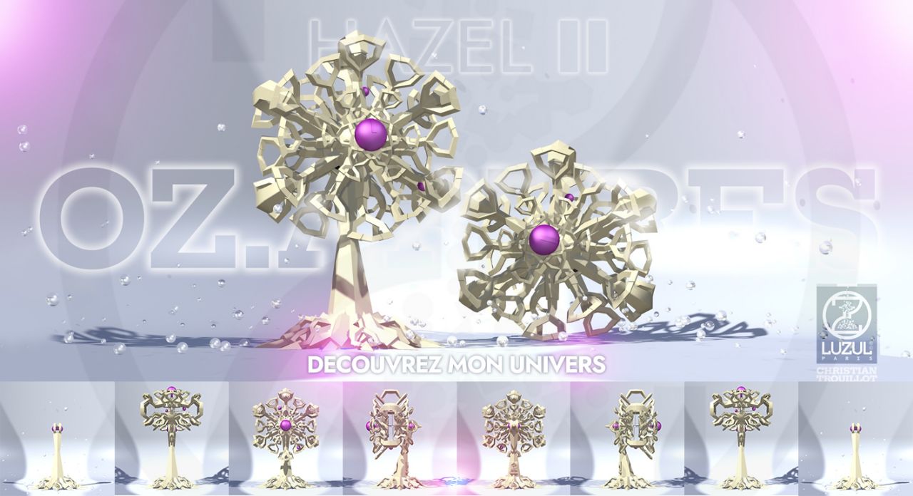 est une sculpture avec horloge qui est alimentée par une pile AA. La sculpture possède également un plateau tournant fournie avec un accu AA rechargeable grâce à son câble USB. Cette création est aussi une lampe LED accompagnée d'une télécommande multifonctions et sa pile bouton.