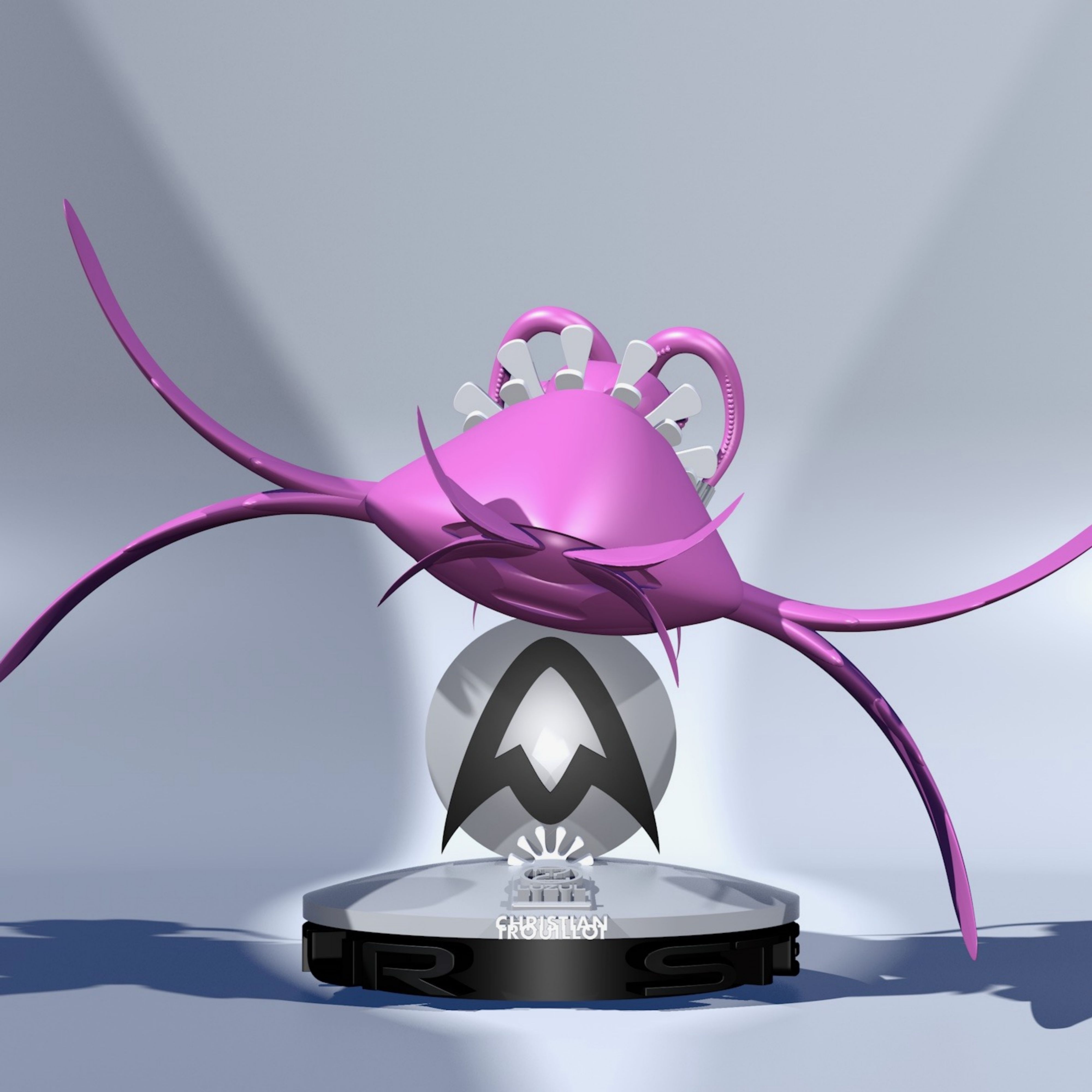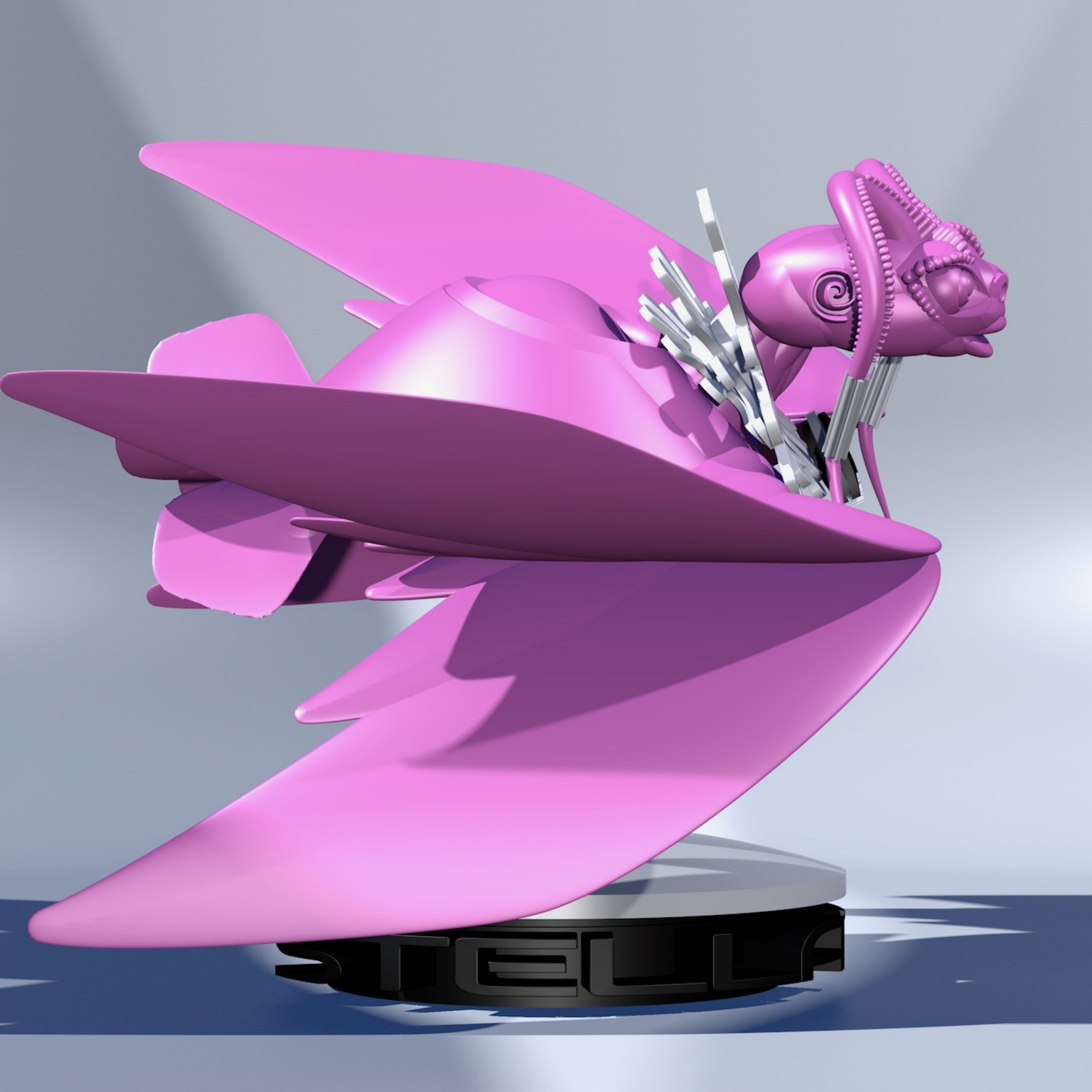 STELLA TURTUR H* est une sculpture avec horloge qui est alimentée par une pile AA. La sculpture possède également un plateau tournant fournie avec un accu AA rechargeable grâce à son câble USB. Cette création est réalisé en impression 3D. STELLA TURTUR HORLOGE doit être conservé dans une pièce où la température n'excède pas 30° et ne descend pas en dessous de 0°.