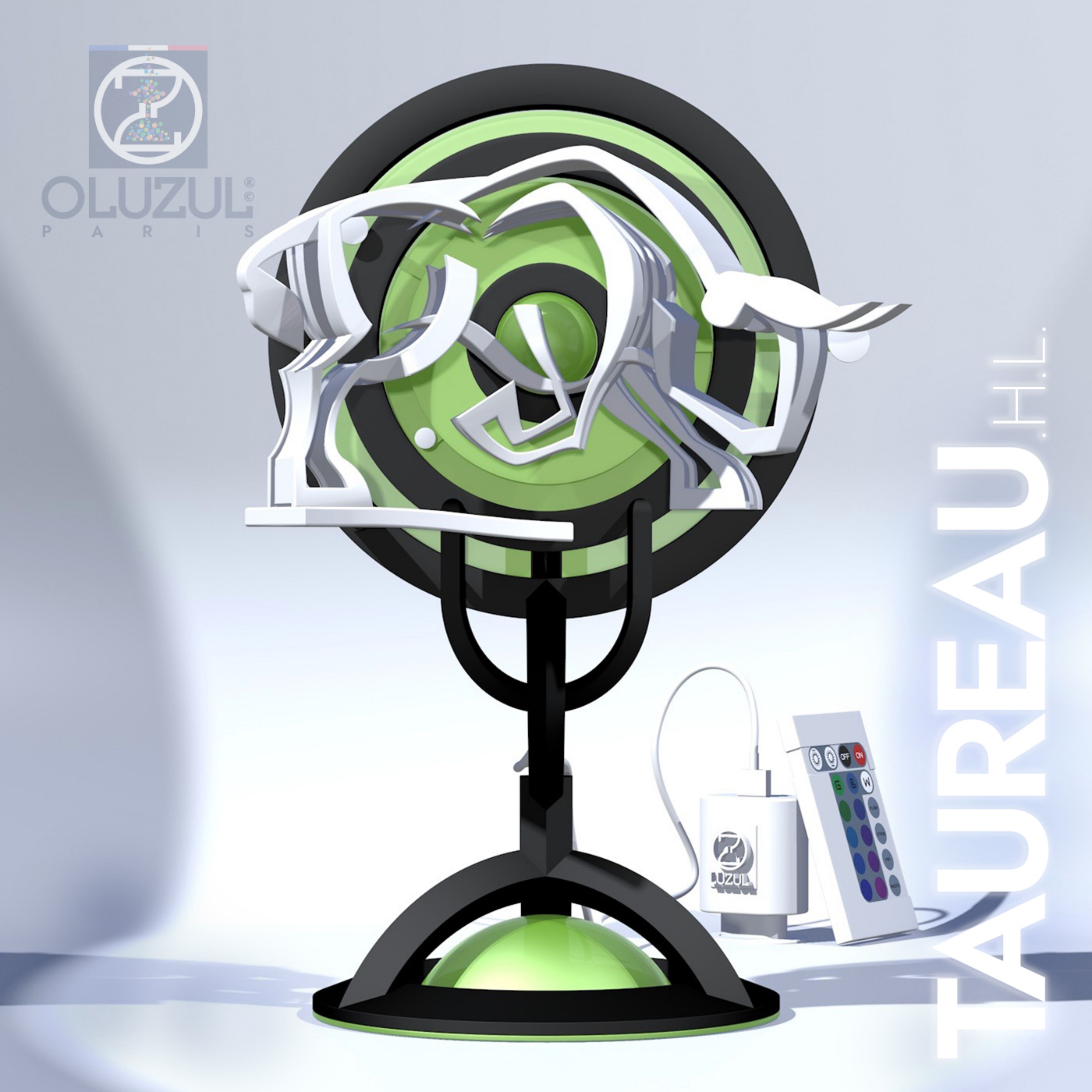 TAUREAU.H.L. est une sculpture avec horloge qui est alimentée par une pile AA. C'est aussi une lampe LED qui fonctionne à l'aide d'un chargeur ( non fourni ) muni d'une prise USB 2 / USB 3. Vous trouverez joint : une télécomande avec sa pile "Lithium battery CR2025 3V" qui vous permettra de choisir votre ambiance colorée. Cette création est réalisée en impression 3D à l'aide de filaments PLA et PVA. TAUREAU.H.L. doit donc être conservé dans une pièce où la température n'excède pas 30° et ne descend pas en dessous de 0°.